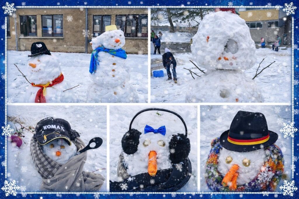 Schneemann-Parade auf dem Schulhof
